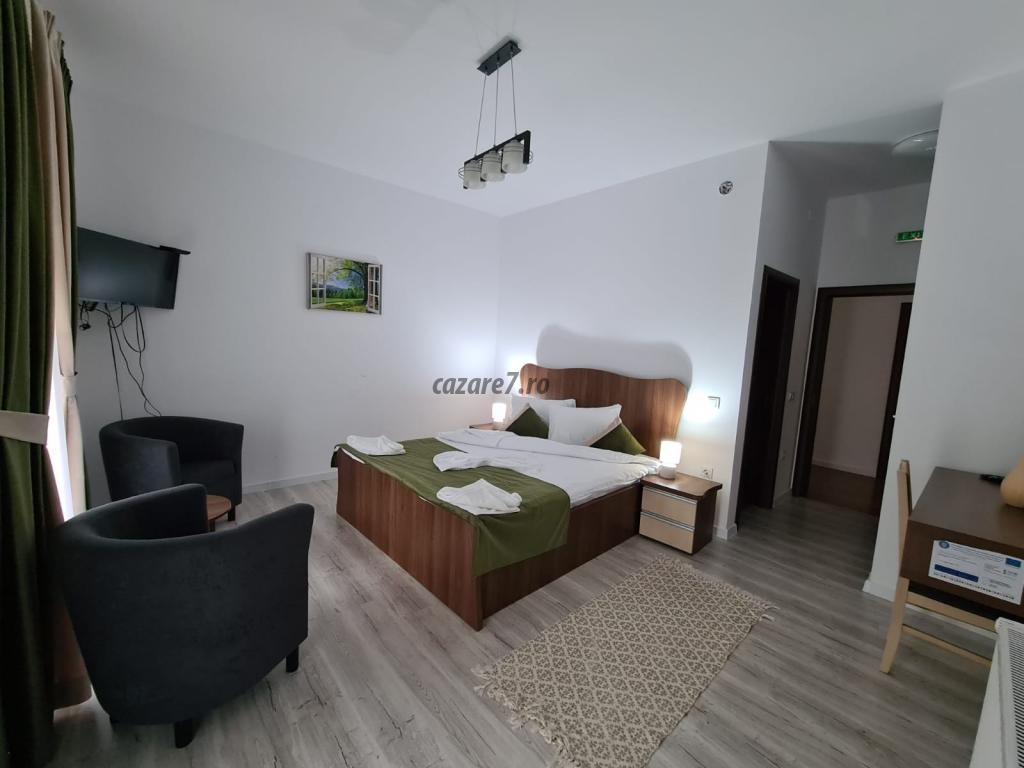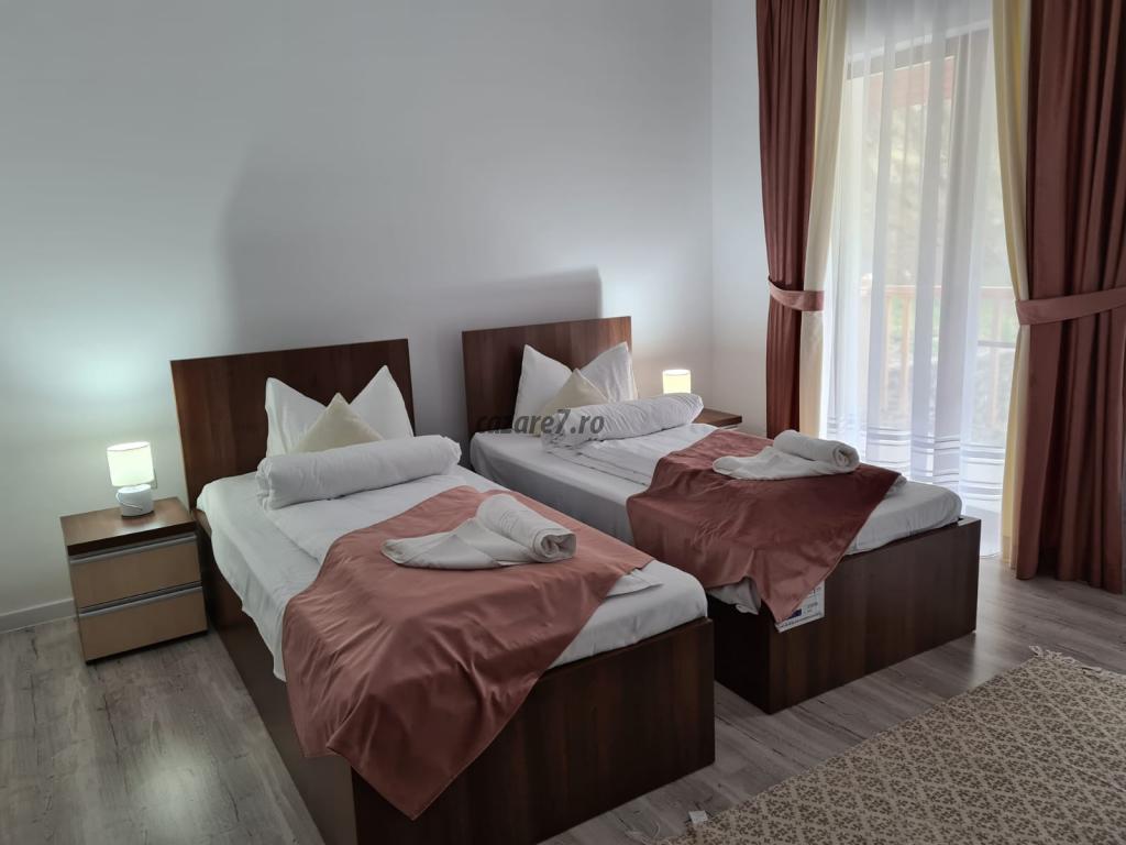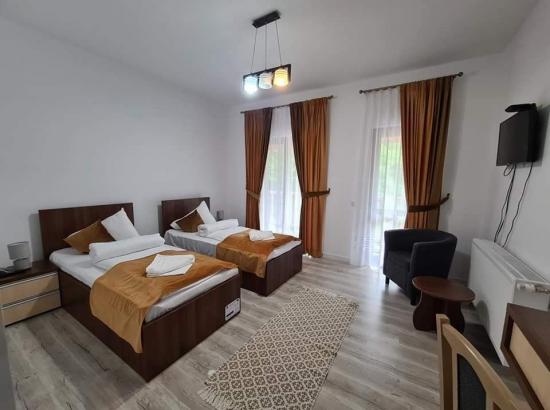 Capacitatea pensiunii noastre este de 10 persoane, în 5dormitoare duble cu băi proprii, 1 dormitor dublu, living spațios, foișor închis pentru grătare și petreceri, biciclete, Wi-fi paturi pliabile pt copii, ciubăr, lac de pescuit, parcare mare.